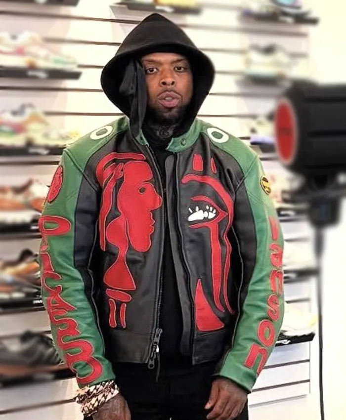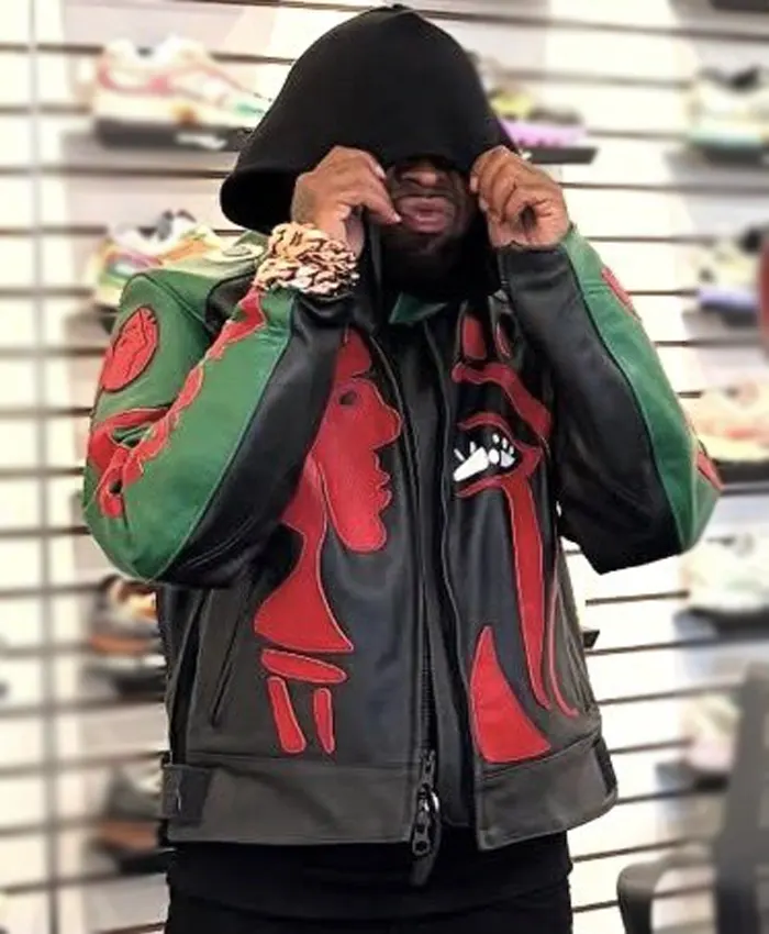 Westside Gunn Inspired Black & Green Moto Leather Jacket