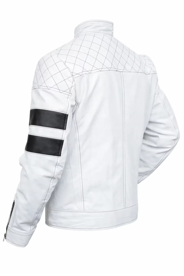 White Padded Motorcycle Mens Leather Jacket