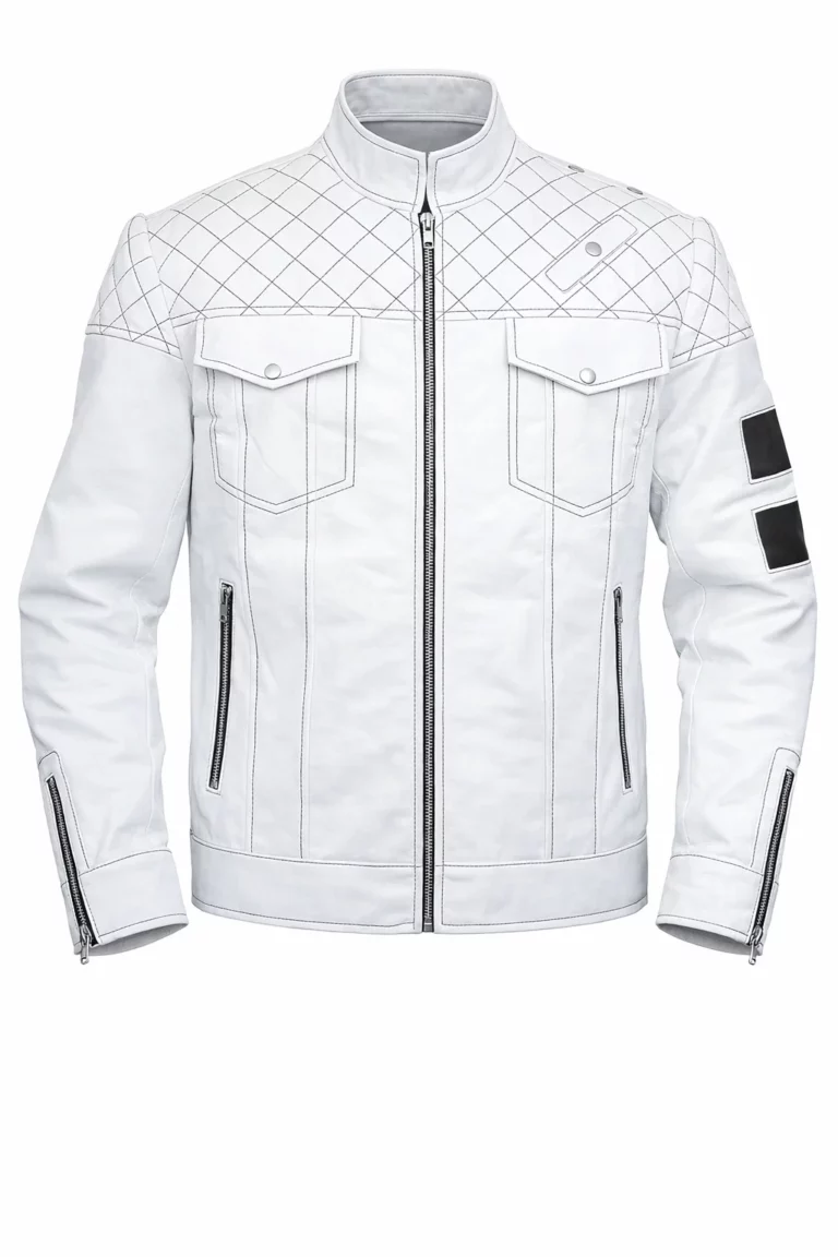 The White Padded Motorcycle Mens Leather Jacket offers a bold, modern look with padded detailing for added style and protection. Made from premium leather, it ensures durability and comfort for everyday wear. Perfect for casual or riding outfits, this jacket adds a sleek and versatile edge to any wardrobe.