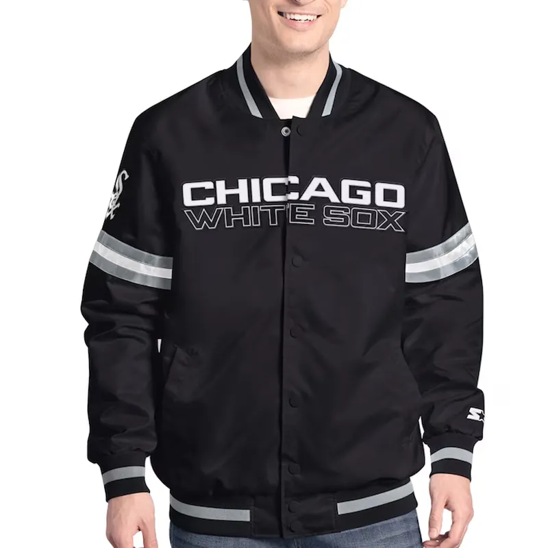 Show your team pride with the White Sox Scout Varsity Satin Jacket. This classic varsity-style jacket combines sleek satin fabric with a timeless design for fans who love retro MLB style. The lightweight satin exterior and soft inner lining ensure comfort, while ribbed collar, cuffs, and hem provide a perfect fit. Featuring bold White Sox graphics, it’s ideal for game days, casual outings, or everyday wear.
