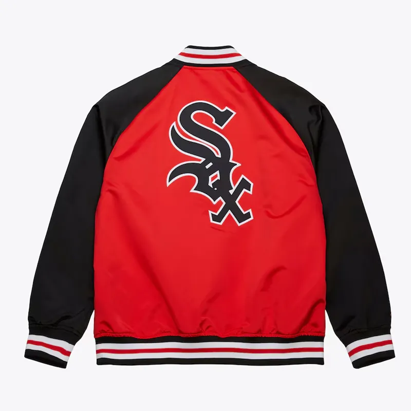 Celebrate classic MLB style with the White Sox Vintage Logo Double Clutch Red Satin Jacket. This retro-inspired satin jacket combines bold color with iconic team graphics for a standout look. Made with smooth satin fabric and a soft inner lining, it ensures comfort and lightweight warmth. Ribbed collar, cuffs, and hem provide a snug fit, while the vintage logo details make it perfect for game days, casual outings, or showing off your White Sox pride in style.