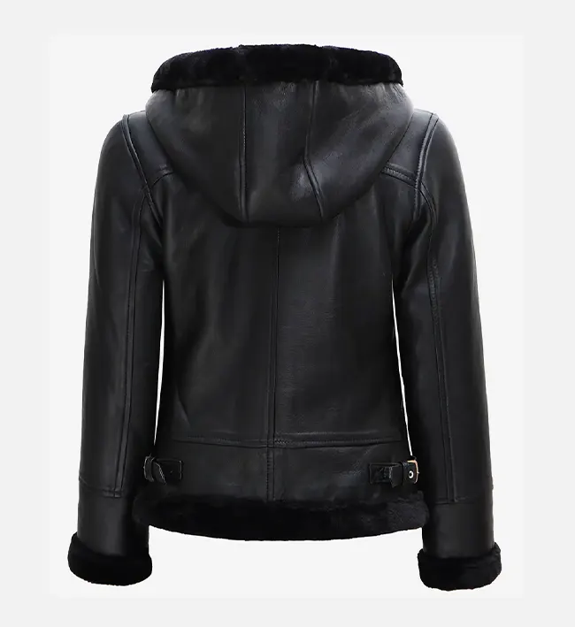 Women’s Classic Black Hooded Shearling Leather Jacket