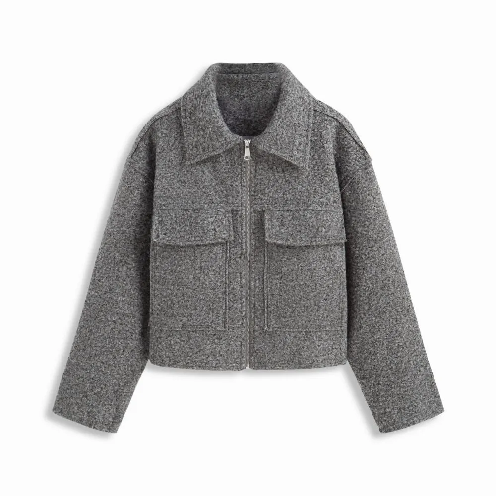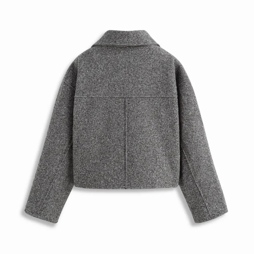 Wool-Style Collar Oversized Full Zip Jacket