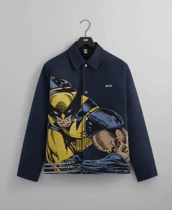 Crafted from high-quality materials, the jacket features a structured fit, button-up front, ribbed cuffs and collar, and multiple pockets for convenience. Bold X-Men and Kith detailing make it a standout collectible, perfect for fans and fashion enthusiasts alike.