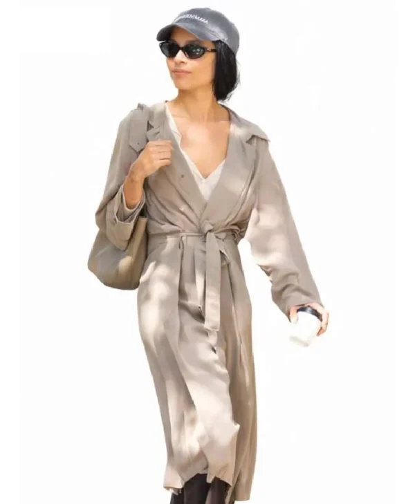 The Zoe Kravitz Style Grey Long Trench Coat brings a perfect blend of minimalism and modern sophistication. Inspired by Zoe Kravitz’s iconic street-style looks, this coat is designed for those who appreciate clean lines, understated luxury, and timeless fashion.